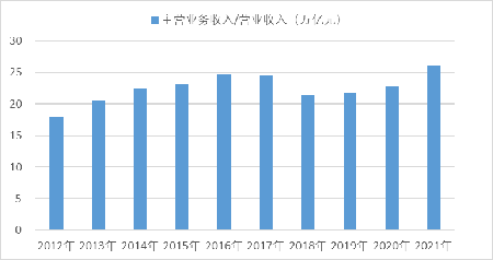 [注:2012-2018年为主营业务收入数据,2019-2021年为营业收入数据。]