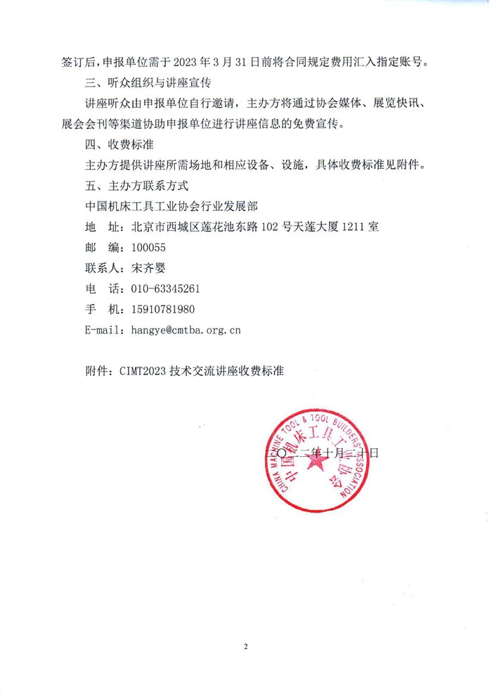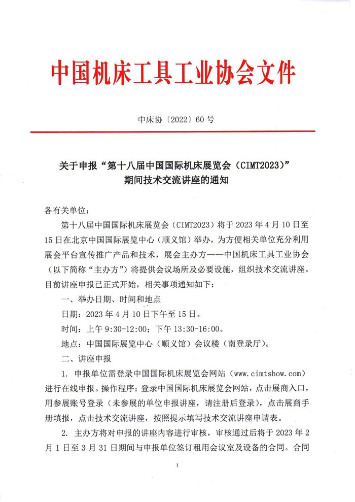 目前,CIMT2023技术交流讲座申报工作已正式启动,欢迎各参展单位踊跃参与。详细信息如下: