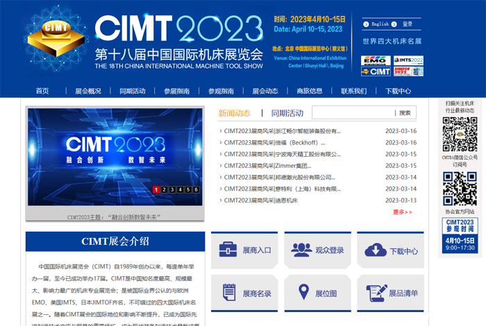 2023年4月10-15日,第十八届中国国际机床展览会(CIMT2023)将在北京 中国国际展览中心(顺义馆)举办,汇聚八方宾客。本届展会总展出面积14万平方米,有来自28个国家和地区的约1600家展商同台竞技。