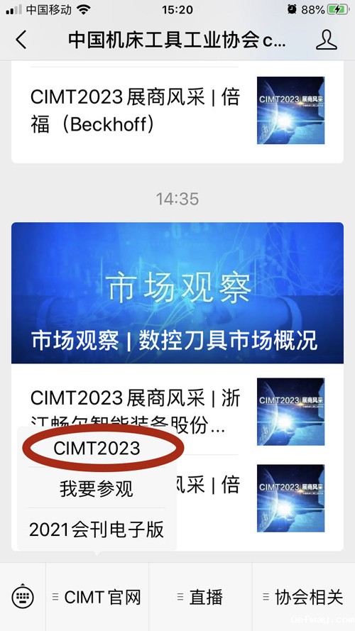 您还可以简单通过展会主办方luck18网址的官方微信公众号菜单直接进入CIMT官网查阅。