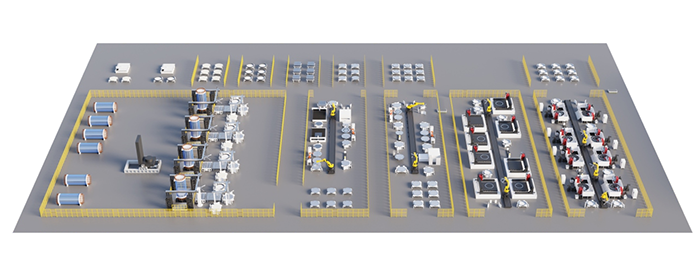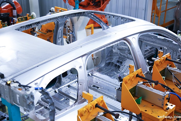 1. 白车身顶盖激光焊接自动化产线(图1)。围绕“激光+智能制造”优势,华工激光为客户提供了丰富的定制化焊装线体解决方案。目前,华工激光在各大主机厂已有50余条焊装线,下线车型200+,整车激光应用国内第一,涉及焊装主线、四门两盖、地板线等,其中“汽车制造中的高质高效激光焊接、切割关键工艺及成套装备”项目于2015年荣获国家科技进步一等奖。设备自动化程度高,稳定量产车型超过千万辆,激光钎焊速度可达120mm/s,激光飞行熔焊速度达到180mm/s,整线生产节拍最快可达43s。