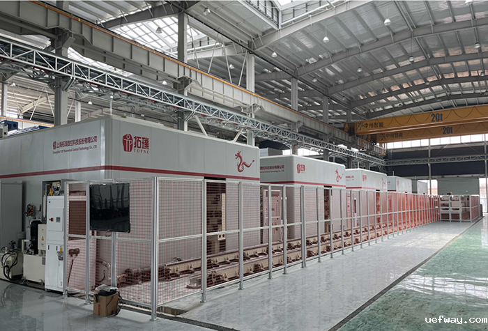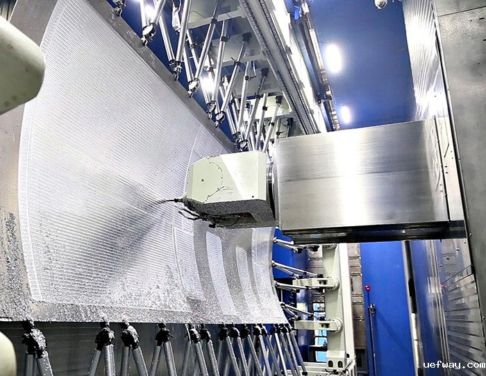 6.国内首条钛合金翻板铣生产线:针对航空航天壁板类钛合金零件的高效加工需求,开展了高刚性卧式龙门框型结构、AC大扭矩双摆头、旋转轴精度自校准系统、可交换工作台等关键技术研究,成功研制大型钛合金卧式五轴翻板铣机床,钛合金加工效率达到400cm³/min,赢得客户的生产线合同。