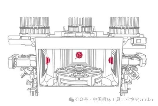 意大利PORTACENTER公司展示了多工位组合机床,将三台卧式加工中心复合在一台机床上,生产效率比普通加工中心提高了3倍以上,同时比专用机床更灵活,可以在15min内更换零件,满足多品种中小批量加工的需求。