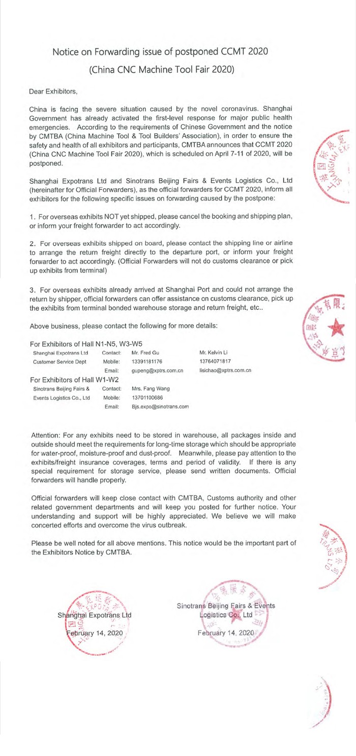 Postponement Notice of CCMT2020
